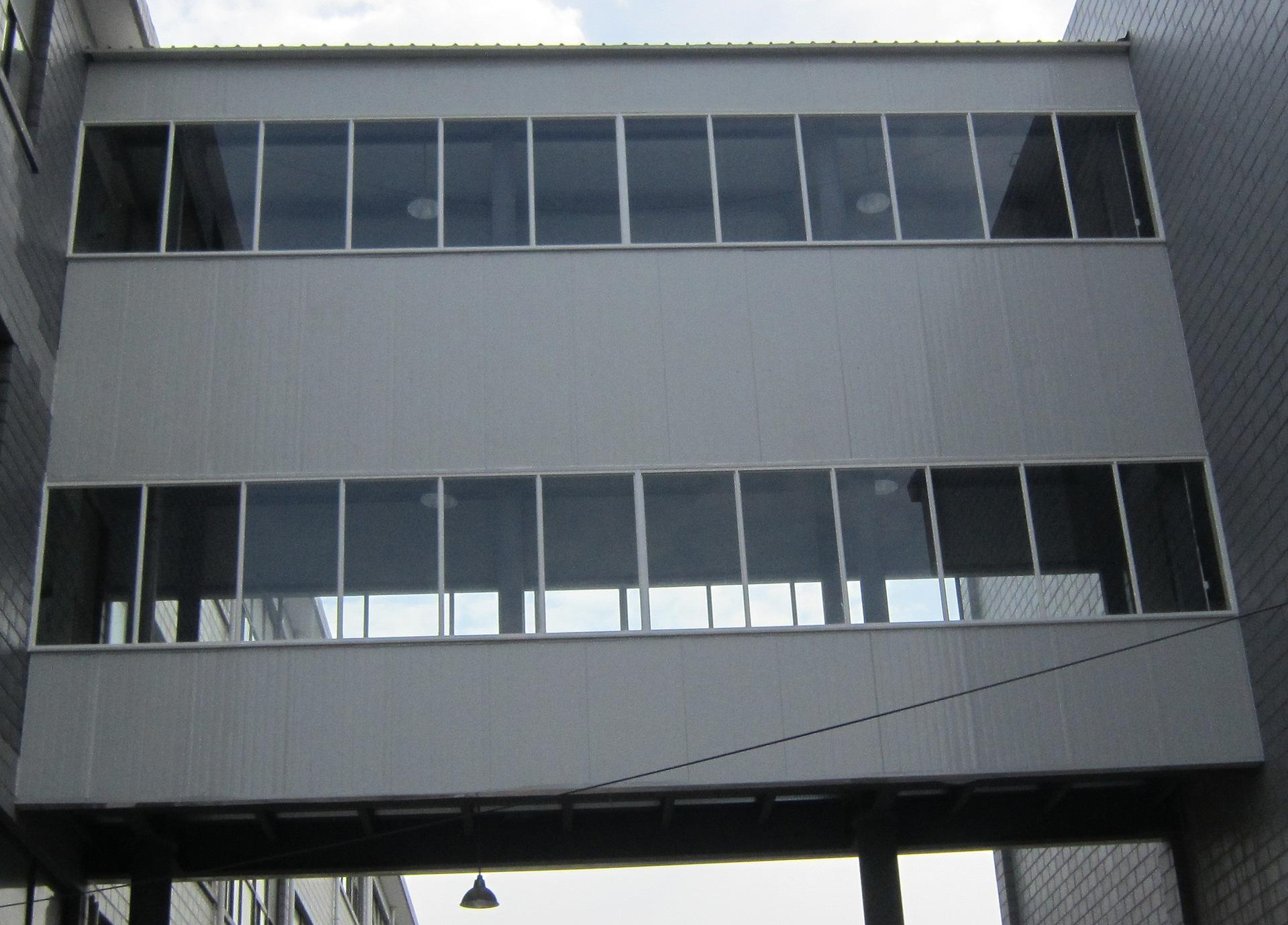 連廊結構形式一般取H型鋼結構的,也有取管桁架,現(xiàn)在最多采用的是H型鋼結構,樓面采用樓承板上面現(xiàn)澆一定厚度的混凝土?,F(xiàn)在有的工程也采用一種新型的材料--ALC板。蒸壓輕質混凝土(Autoclaved Lightweight Concrete)的簡稱,是高性能蒸壓加氣混凝土(ALC)的一種,自重輕,可以減少結構體形。連廊鋼結構工程設計時一定注意兩個建筑的不均勻沉降及位移,支座構造尤其關鍵。
